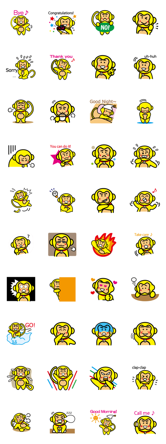 これは、縁起の良い色の黄色のお猿さん『福鈴(フーリン)』のスタンプです。