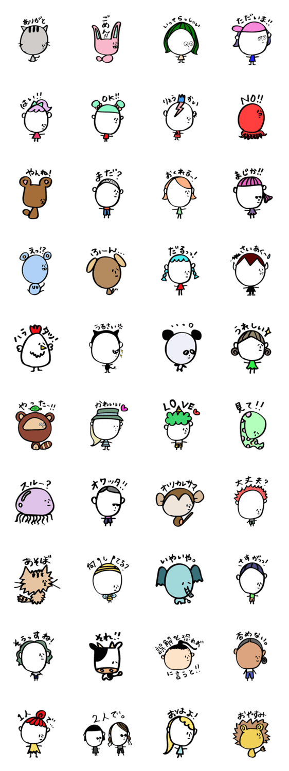 控えめな表情のキャラクタースタンプ。文字大きめ。