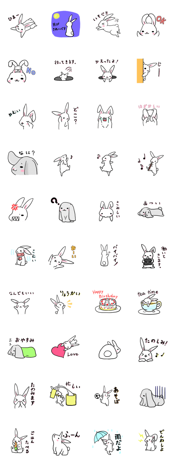 ゆるい白うさぎとちょこっとだけロップイヤーのうさぎのスタンプです!!ウサギたちでLINEでの会話を盛り上げたり簡単にしてみませんか?