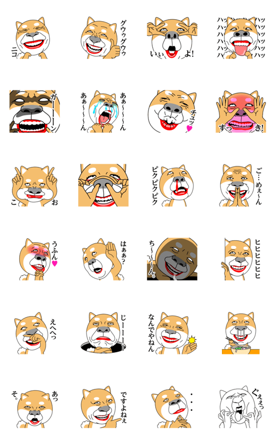 思わずしばきたくなるような柴犬たちのスタンプです。どうにでもして下さい。