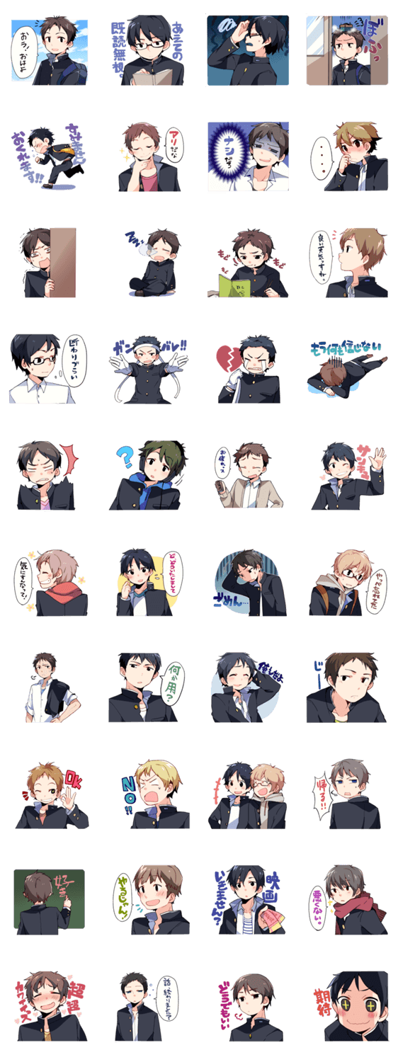 学ランだったらなんでも許せる、そんな気がするスタンプです。学生気分で使ってください。