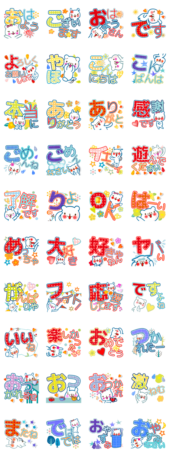 でか文字のよく使う言葉スタンプ。北欧スタイルの色や形で彩った大人かわいいスタンプ。連続して使える言葉もあります。ID移行に伴う再販・改訂版
