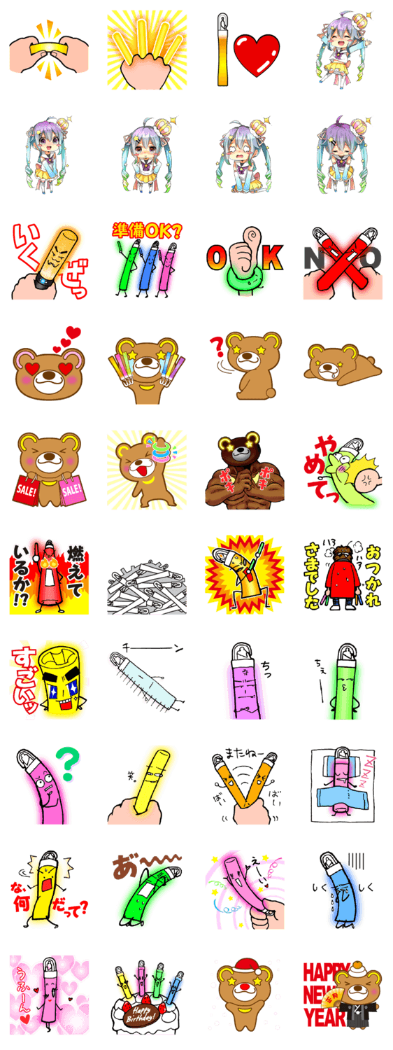 ルミカライトのスタンプが登場!!!ルミカショップキャラクターのルナちゃんやルミくまくんのスタンプも限定配信♪ライブ前や燃え尽きて高まった後に使ってみてください!