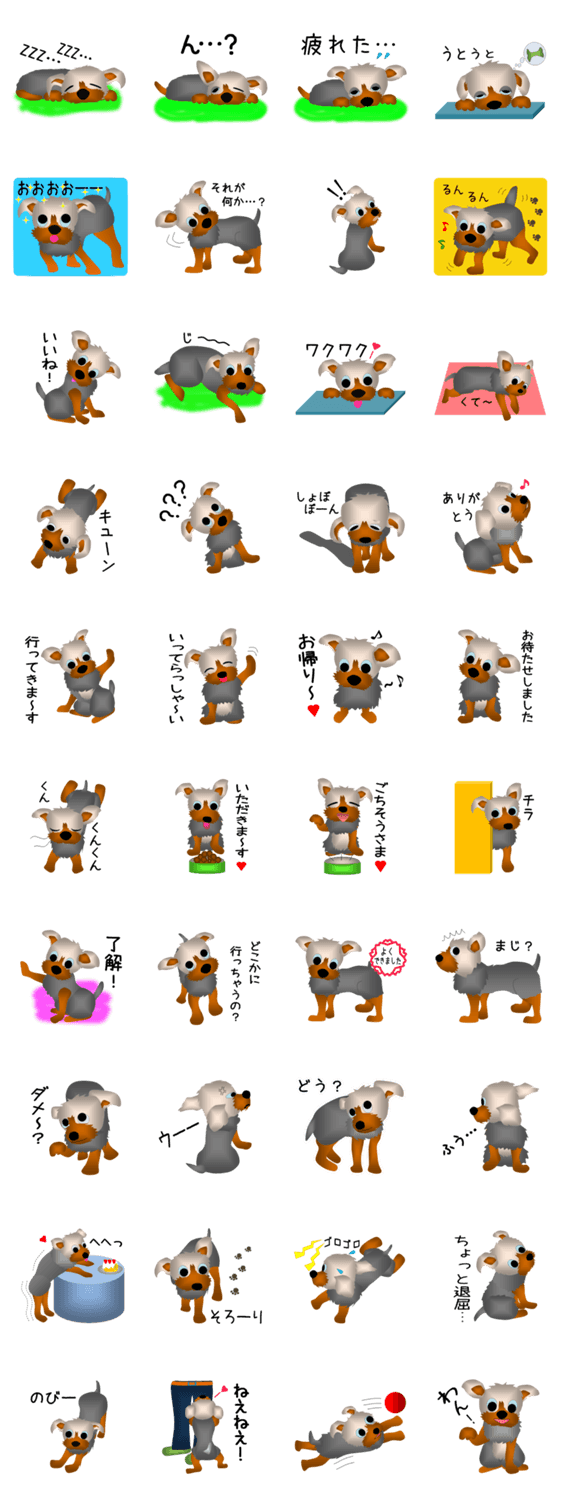 犬が大好き、ヨーキーが大好きなあなたへ。耳垂れヨークシャーテリアのおしゃべりスタンプ。ヨーキーの気持ちになってみました。
