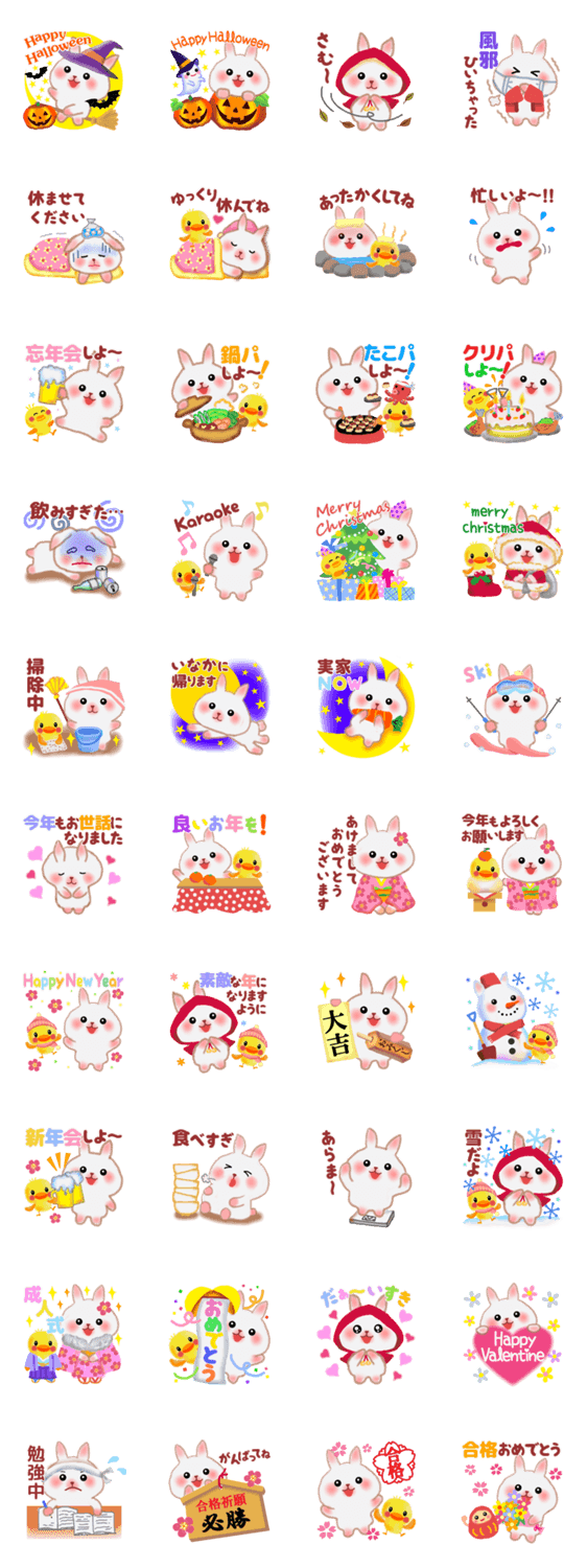 ハロウィン、クリスマス、お正月、バレンタインなど…冬に活躍するスタンプをうさぎのうさっぴがお送りします。