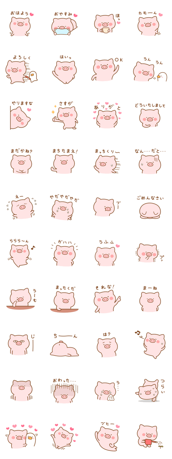 つぶらな瞳で語りかけるこぶた「ぶたたん」のスタンプ第十一弾です。