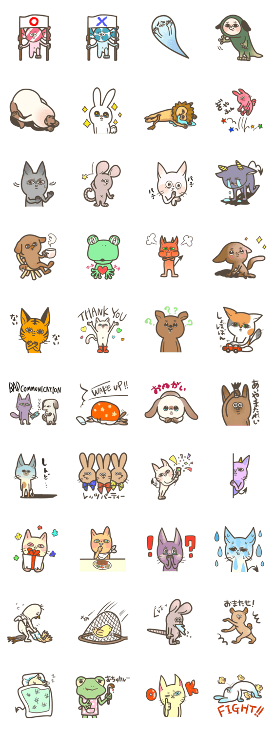 心に訴えかけてくるようなこないような…。絶妙な瞳の持ち主たちのスタンプです。