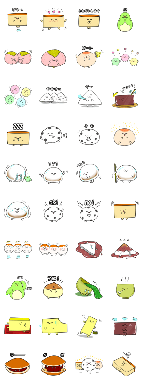和菓子たちのわちゃわちゃしたスタンプです。 ゆるい会話を更にゆる~く彩ります。