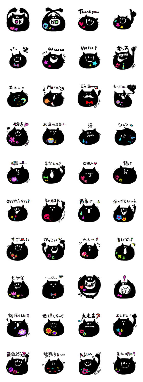 お洒落な黒いネコ、シャンティのとっても目立つスタンプです★