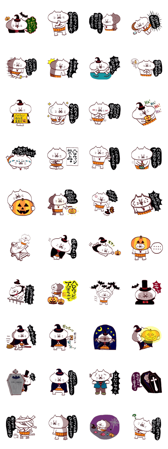 関西弁を話す、ネコのおっちゃんのスタンプにハロウィンバージョンが出来たで〜!トリックオアトリートやで〜!