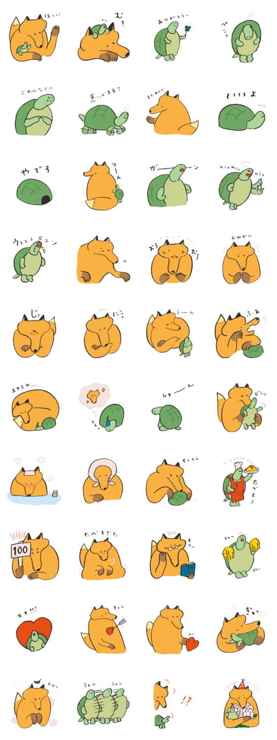 キツネのご主人とカメのかめちゃん -LINEスタンプマニア