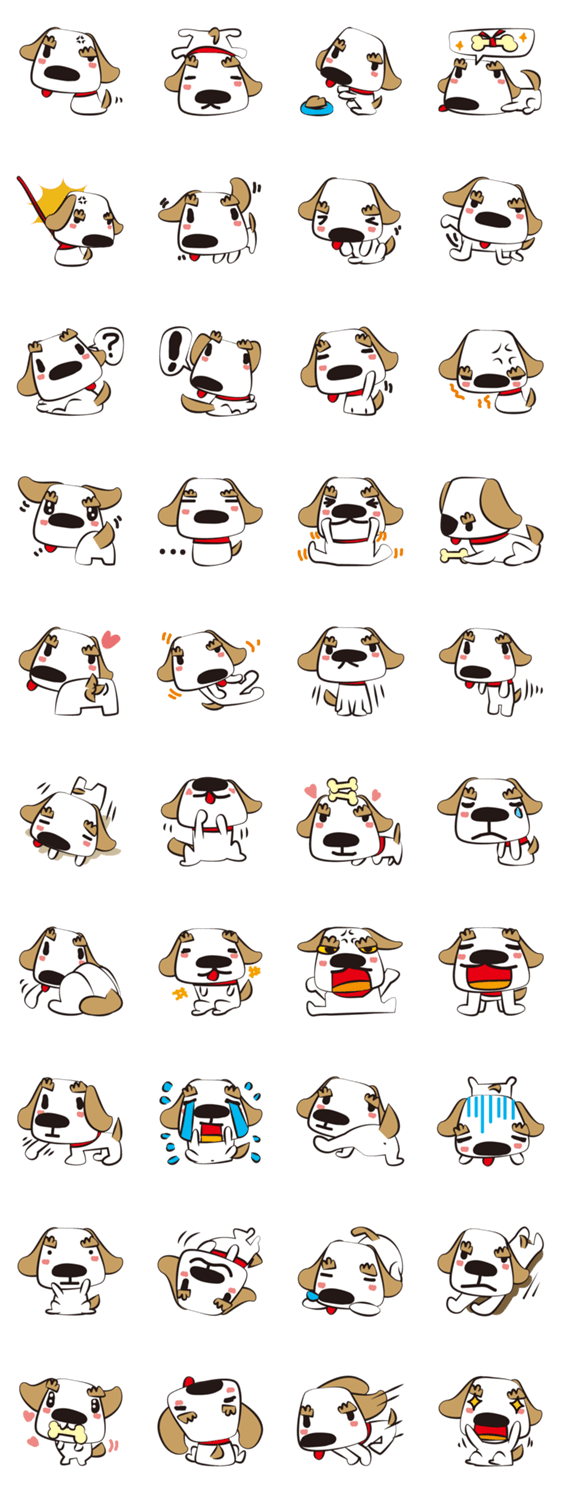 マユゲがチャームポイントのマユゲイヌさん。沢山の表情があるので気分に合わせて送ってみましょう。
