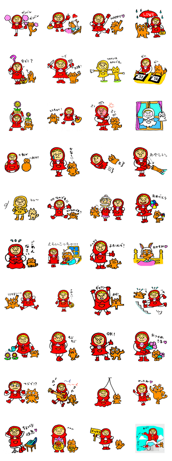 かわいい あかずきんちゃん の楽しいスタンプです。 みんな元気になーれっ♡