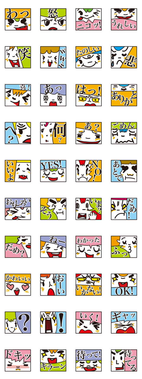 会話と表情をコマ割にしてみました。シーンに応じた言葉を使って下さい