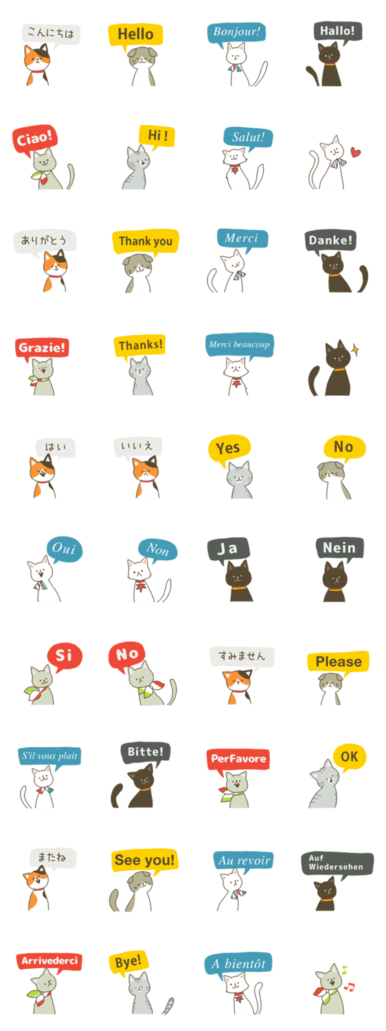 7匹の猫(Cat7)による集会、C7サミット。日本語、英語、フランス語、ドイツ語、イタリア語の5カ国語のスタンプです。