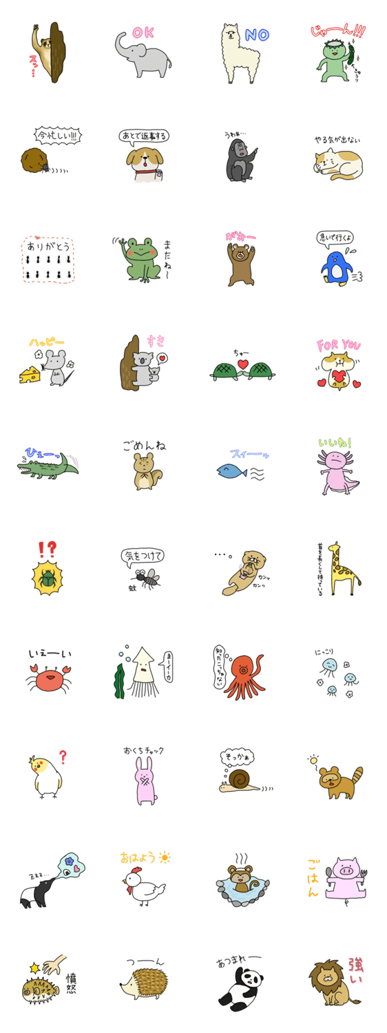 いろんな動物、魚、虫を集めました。底抜けハッピーです。
