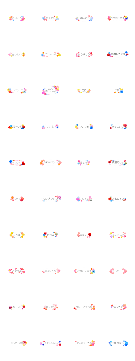 吹き出しにお花の枠が付いています。 カラフルで可愛いお花がたくさん付いてます。