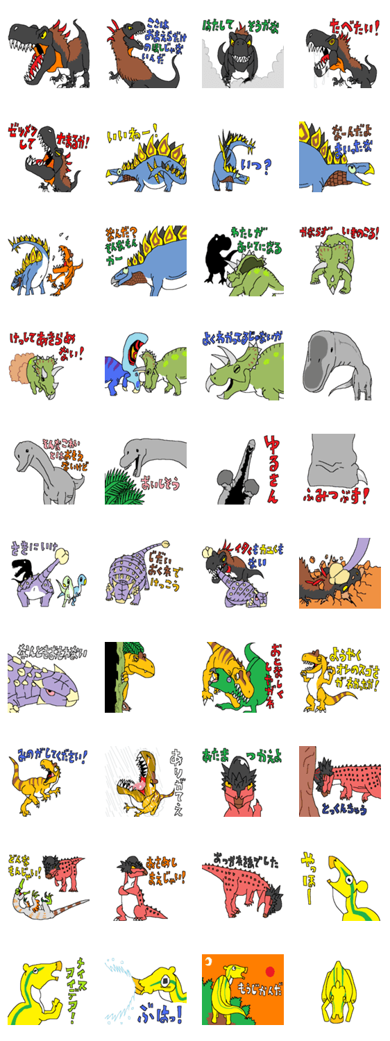 ティラノ、ステゴ、トリケラ、ブラキオ、アンキロ、アロ、パッキー、エドモント・・・。単なる恐竜のスタンプです。時代は完全に中生代だから。