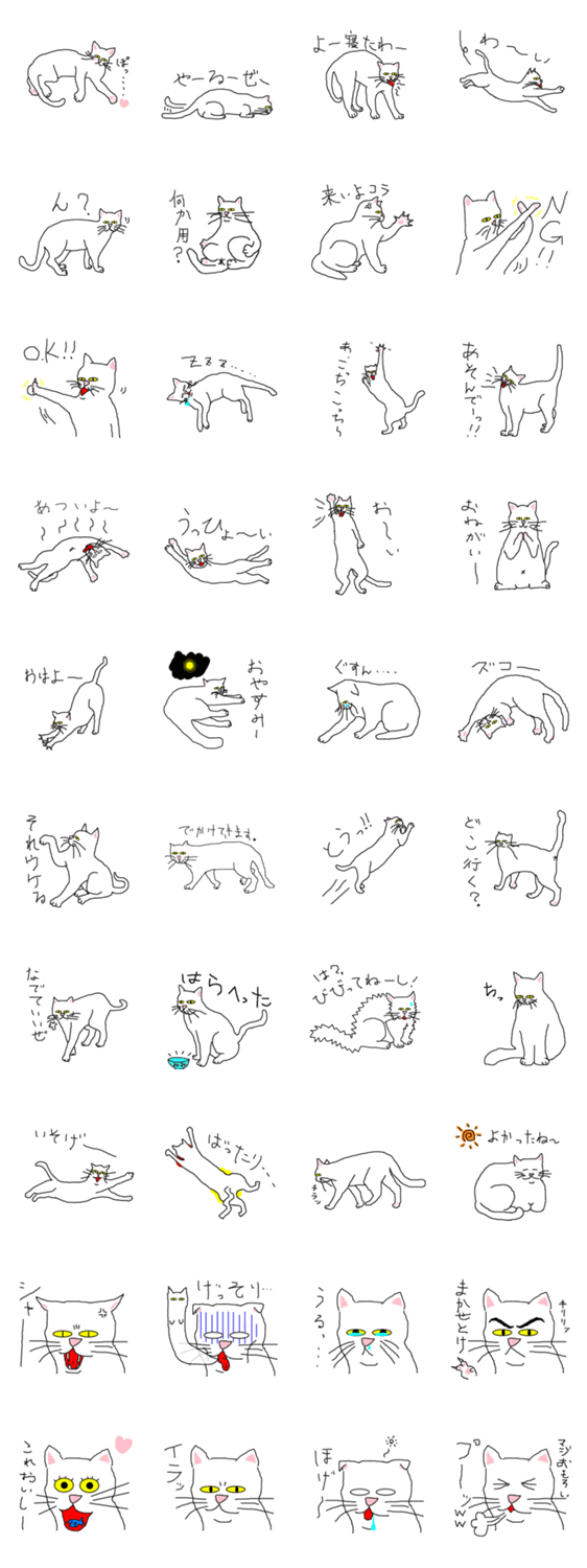 マウス書きにゃんこ "白猫みみちゃん" -LINEスタンプマニア