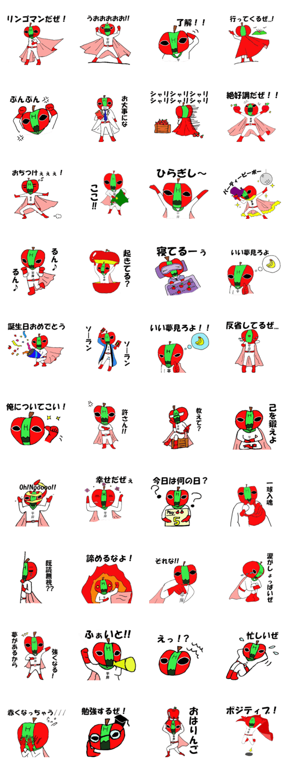 札幌市にある平岸の公認キャラクター!リンゴマンがみんなに元気を!ポジティブに過ごしたいあなたにぴったりのスタンプです☆