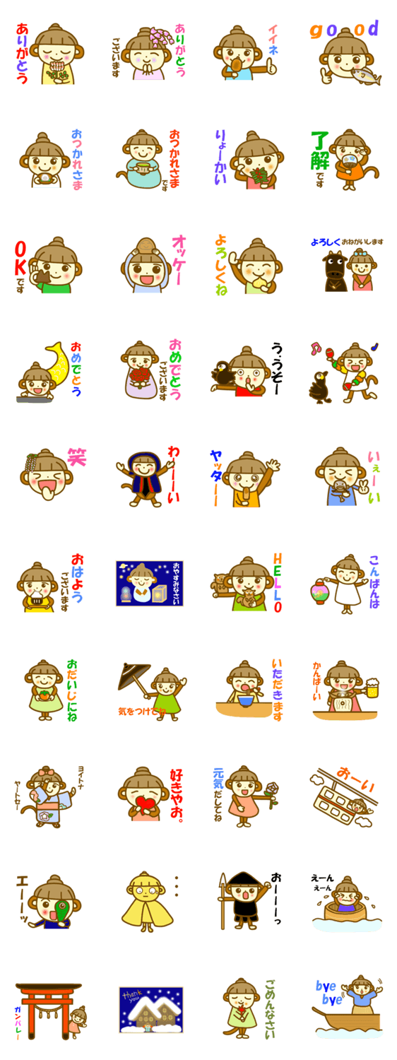 おさるさんの名前はおはぎです。なんとなく岐阜にゆかりのある物がスタンプになっています。