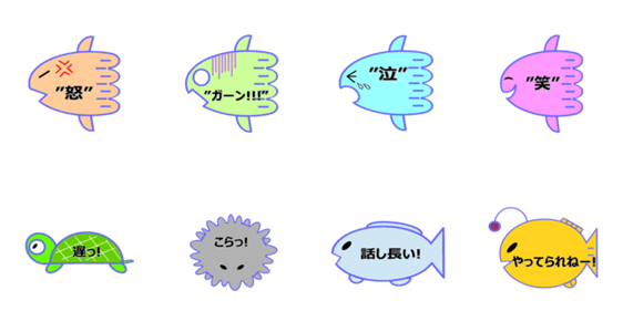 ブラックなマンボウ君と海の仲間たちのスタンプです
