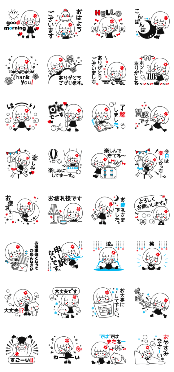 使いやすいおかっぱちゃんで、よく使う基本スタンプをまとめました。