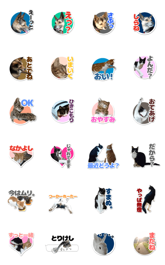 妹が飼っているペットをシール風スタンプにしました。あなたのかわりに動物たちが気持ちを伝えます。
