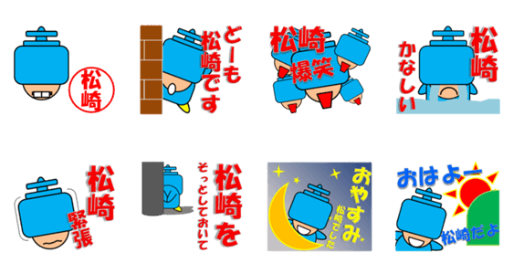 苗字が松崎の名前スタンプ。学校の友達や部活のチームメイト、会社の仲間との会話で使ってください。