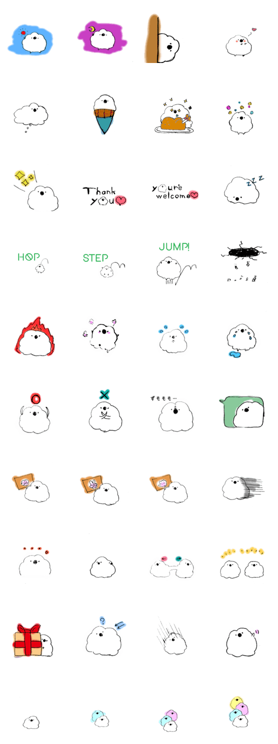 ゆるくてかわいい、不思議な生き物もけもけのスタンプです。