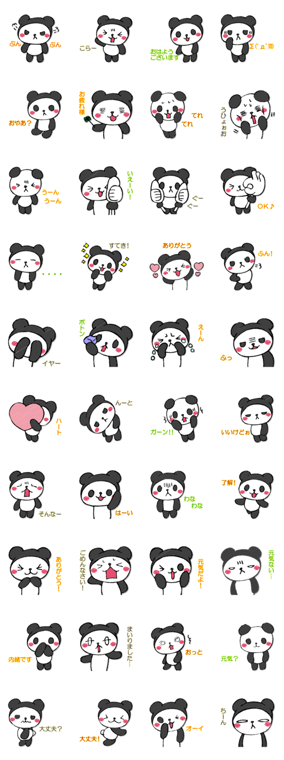 やさしい顔のパンダさんが返信。毎日使えるあいさつや、返事、リアクションなど便利な言葉がたくさんあります。