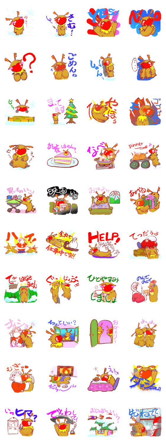 赤いハート鼻のルドと星鼻のトナナ、白ヒゲのサンタさんの、ちょっとまったりした3人(?)の冬物語スタンプ♪