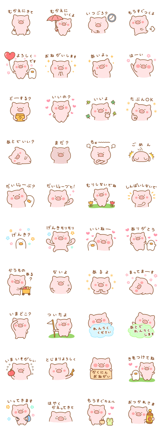 つぶらな瞳で語りかけるこぶた「ぶたたん」。家族への連絡でよく使うスタンプの詰め合わせです。