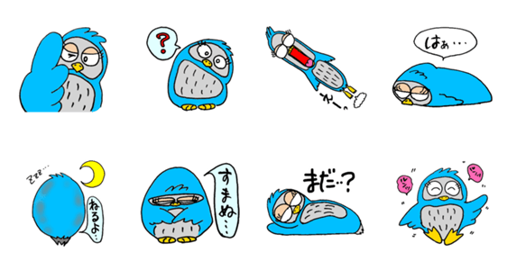 青フクロウの福太郎、応援よろしく -LINEスタンプマニア