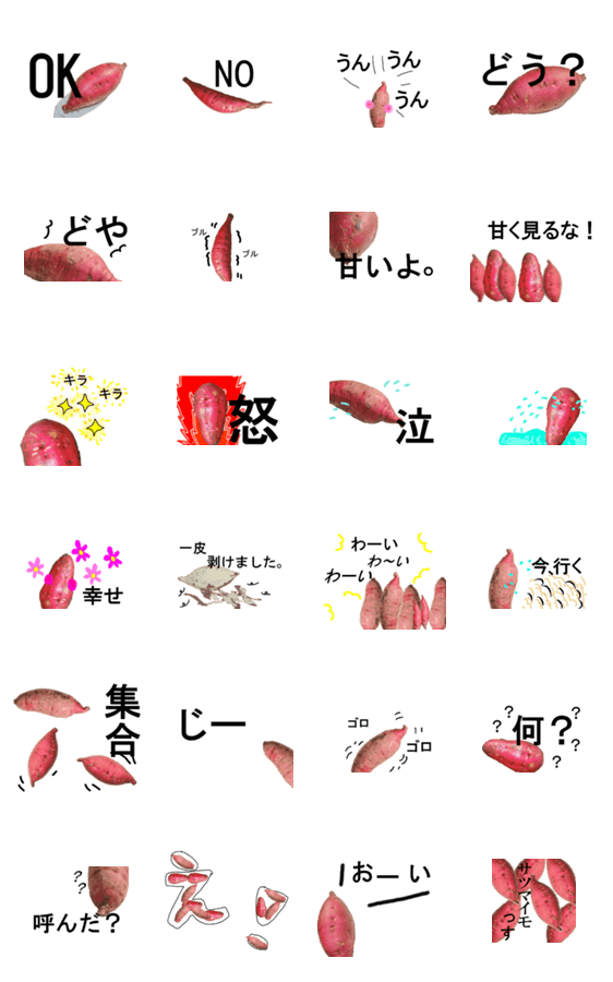 「実写版サツマイモ」サツマイモの良さが出ているスタンプです。日頃の会話にサツマイモはいかがですか?