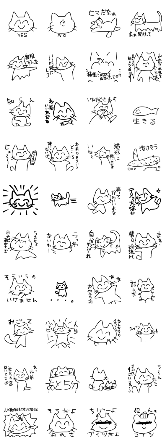 リュド画伯の笑顔がジワるねこさんスタンプ -LINEスタンプマニア