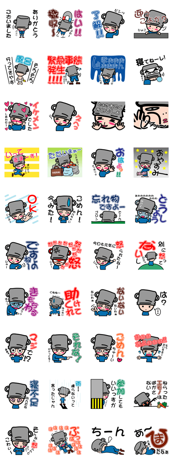 鍋をかぶってる不思議な子。表情豊な元気なスタンプです。 よろしくお願いします。