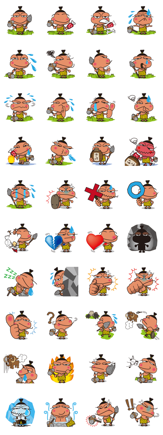 原始時代を生きる原人サピエの日常シーンです。使いやすいスタンプにしました。
