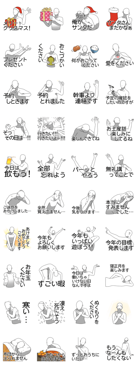 年末年始の白人間 -LINEスタンプマニア