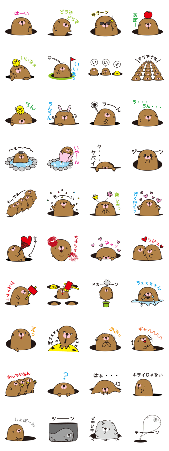 モグラ時々ひよこ。リアクションやあいづち編です。モグラが穴から登場します。
