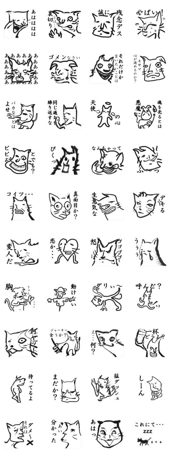 筆で描いたネコ風スタンプ。面白いスタンプ探してるなら、間違いなくコレでしょ!