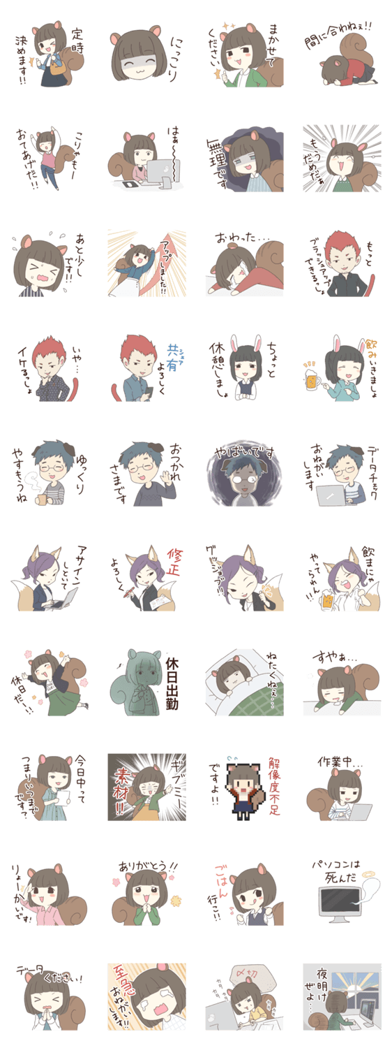 森のWEB制作会社で働く動物たちのスタンプです。WEBデザイナーの方以外でも使えるスタンプになってます!