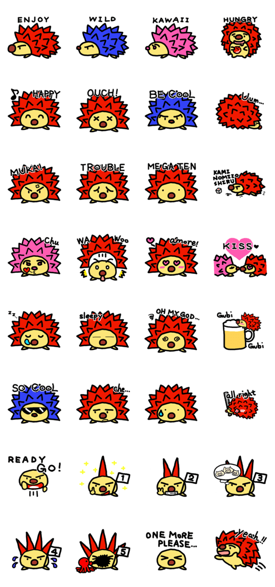 かわいいハリネズミのスタンプです。 はりねずみニョッキ(たけのこニョッキ)で友達と遊ぼう♪