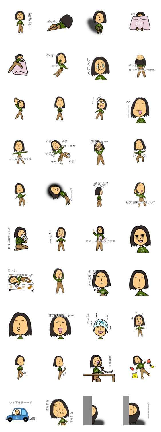 み、が付く名前専用スタンプ。めんどくさがりやで、だらしなくズボンが常に逆なのです