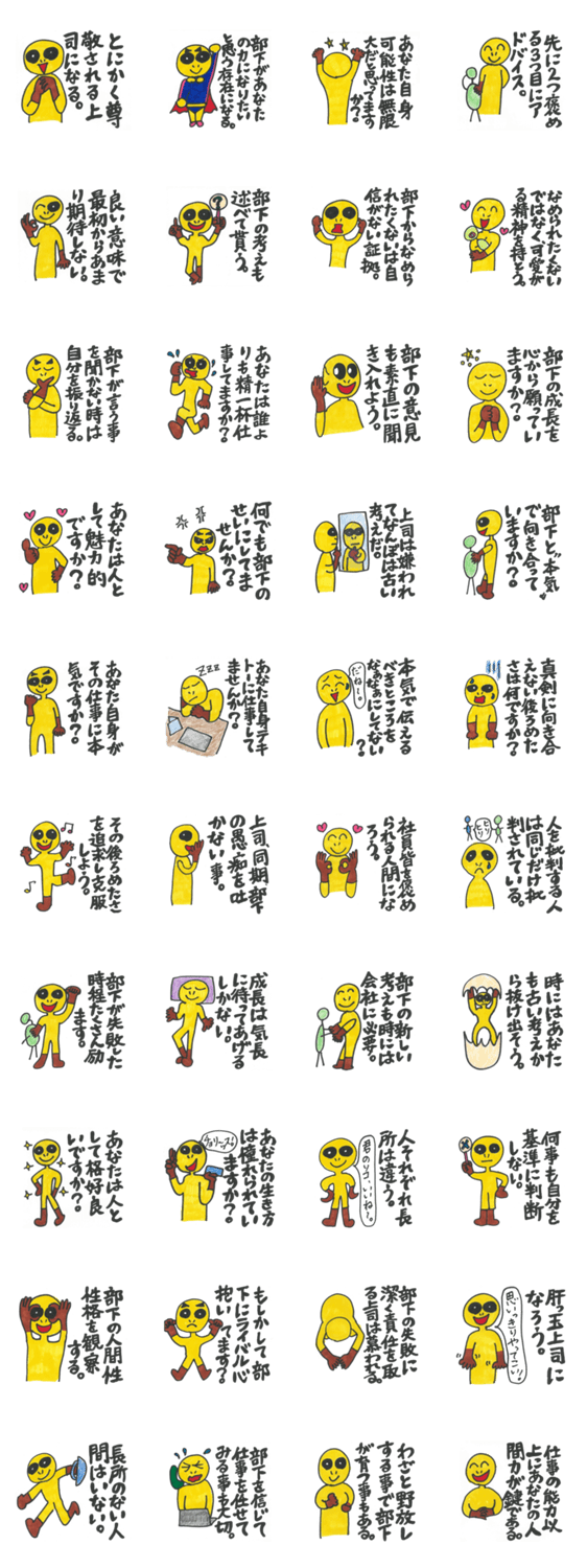 彼は宇宙人のペイホ~さん。彼があなたとあなたの友達に会社で好かれてかつ部下がついてくる上司になる方法を教えてくれるよ!持ってるだけでなぜか安心できるスタンプ。