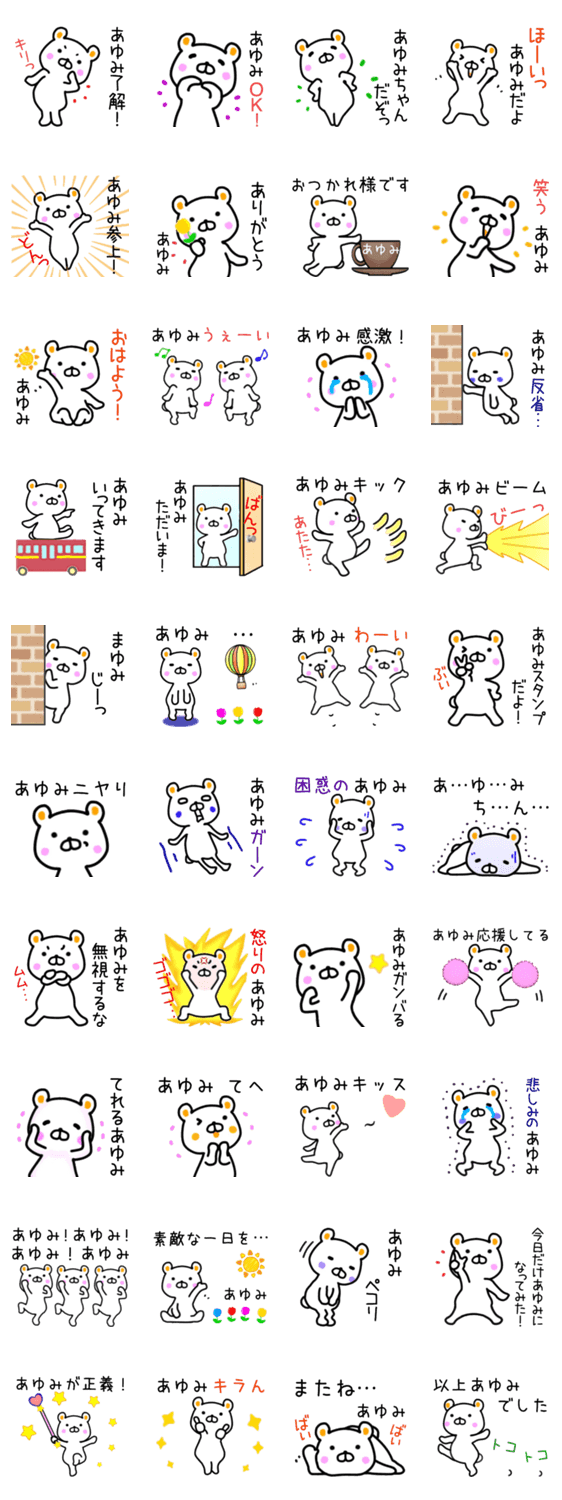 クマのアユミさんスタンプです。亜由美さん、歩美さん、安祐美さん、愛弓さん、まだまだ沢山のあゆみさんへ。宜しければ使ってみて下さい。よろしくお願いします。