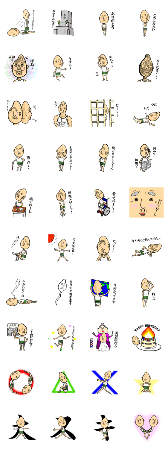 シュールでキュートなお米のおじいちゃん”米爺”。日常的に使えるウザカワスタンプです。