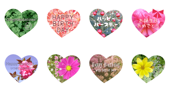 花や植物の写真と共に「おめでとう」を伝えるスタンプです。 お世話になっている人に送ったり、 大切な記念日に使えます♪