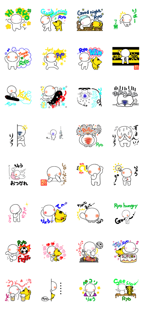 りょうと、りょうを取り巻く人達に贈るスタンプです。一緒にいる虎っち共々よろしくお願いします。
