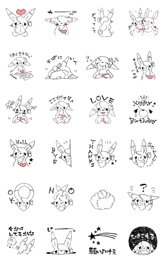胸キュンしちゃう、もふもふうさぎのお友達ネジうさ。おばけなのに怖がりだよ。縁取り加工だから何色の背景でも見やすくて、相手にもやさしいね。スタンプ第8弾。